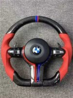 This customized steering wheel is engineered to match the high standards and aesthetics of BMW vehicles. Its red strip accent adds a touch of sportiness and sophistication, enhancing the look of your car’s interior. The design ensures ergonomic comfort while maintaining an aggressive yet elegant appearance that complements both classic and modern BMW models.